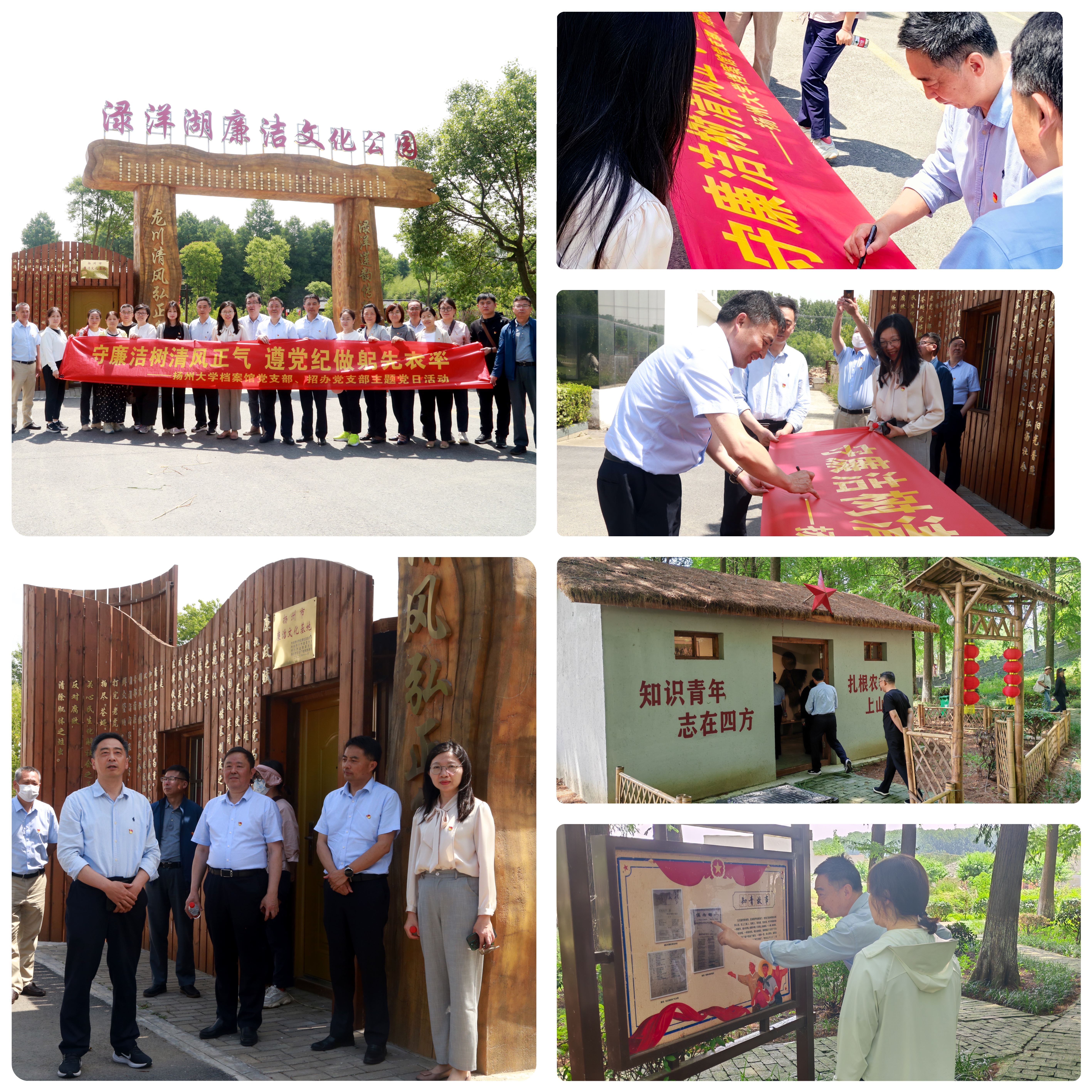 6月7日,机关党委档案馆党支部、招办党支部全体党员职工赴邵伯镇渌洋湖廉洁文化公园联合开展“守廉洁树清风正气,遵党纪做躬先表率”党纪学习教育主题党日活动。机关党委委员洪岑、钱厚斌同志参加活动并进行了巡学旁听。